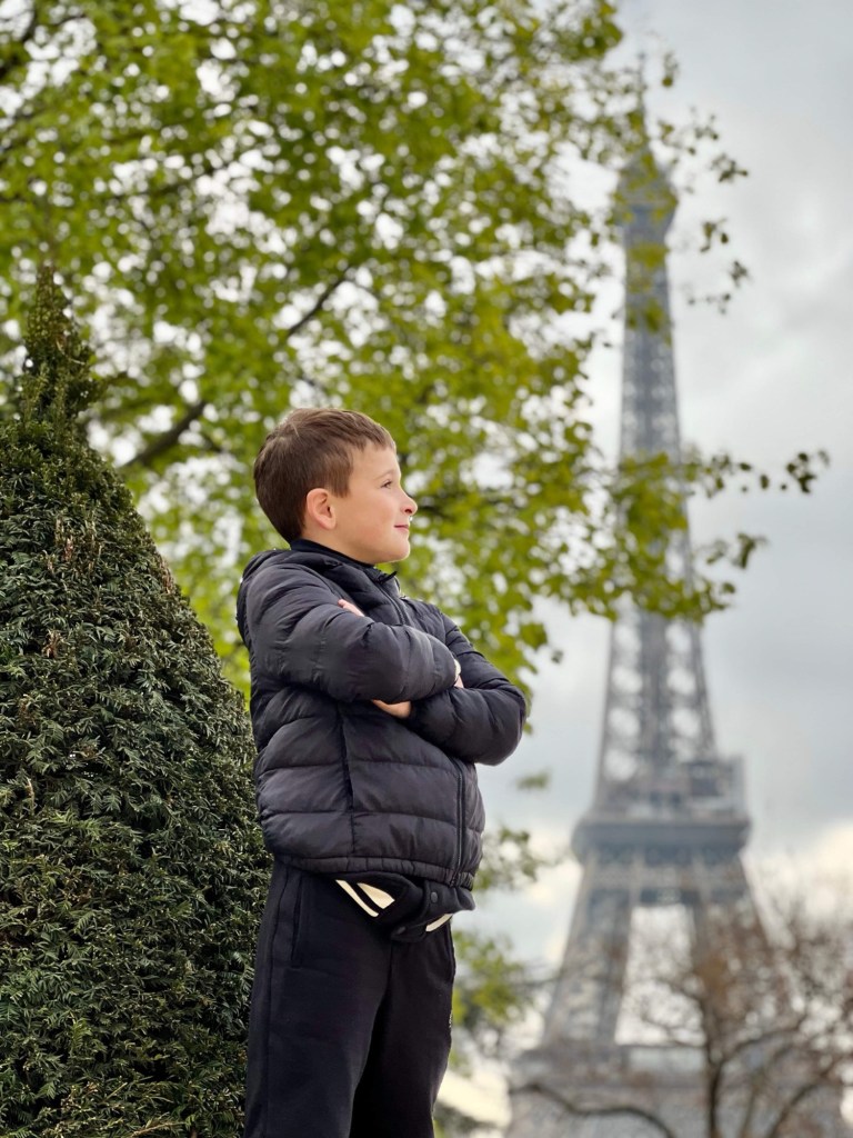 Para quebrar o gelo no primeiro dia de passeio, a Daniela escolheu para os filhos nosso tour pelo principal eixo turístico de Paris.